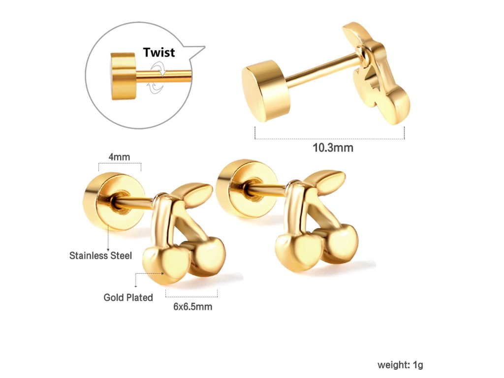Pozlátené náušnice pre deti CHERRY