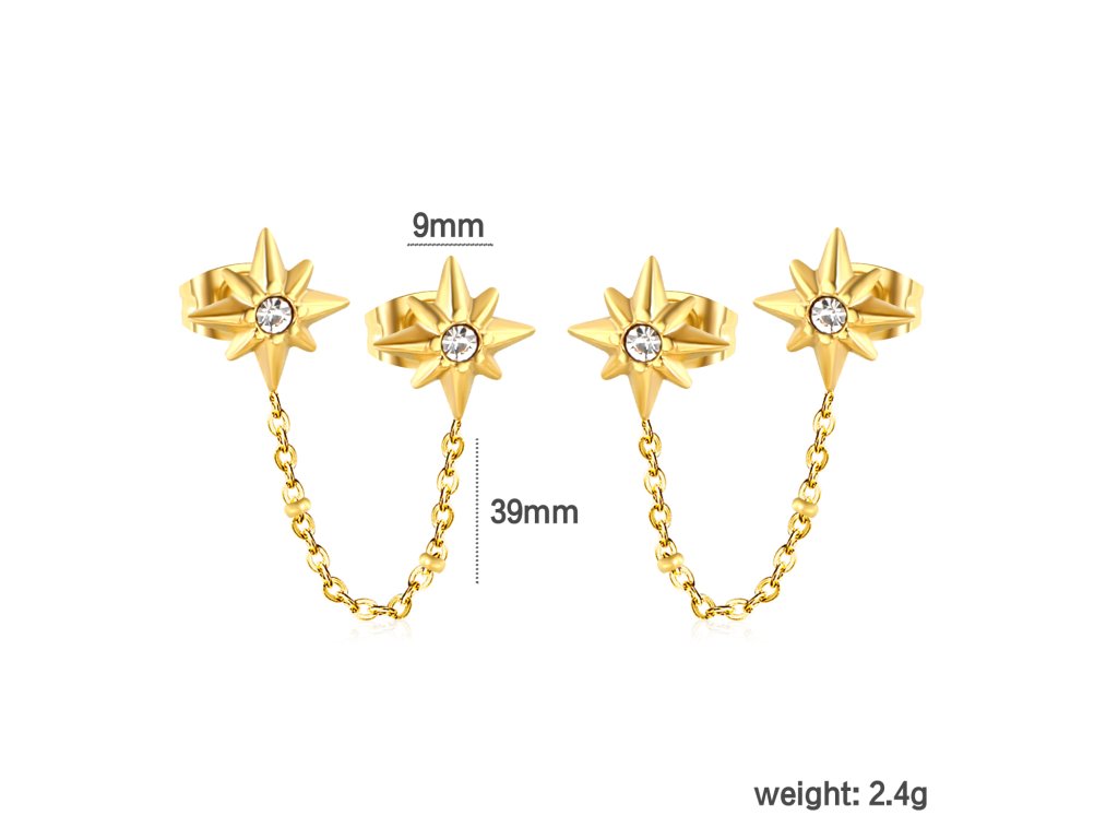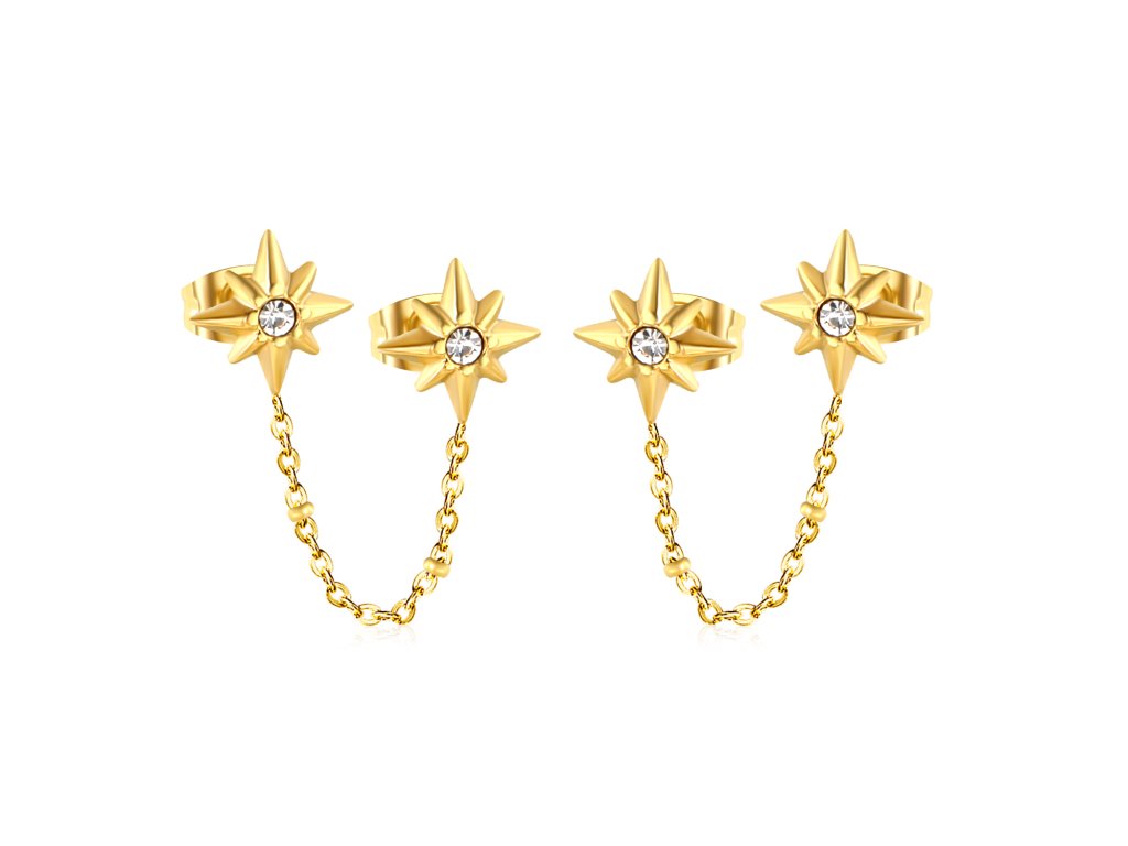 Retiazkové náušnice Rumi sú nádherným romantickým kúskom, ktorý dokonale vynikne na vašich ušiach. Určené sú pre dve dierky na jednom uchu.