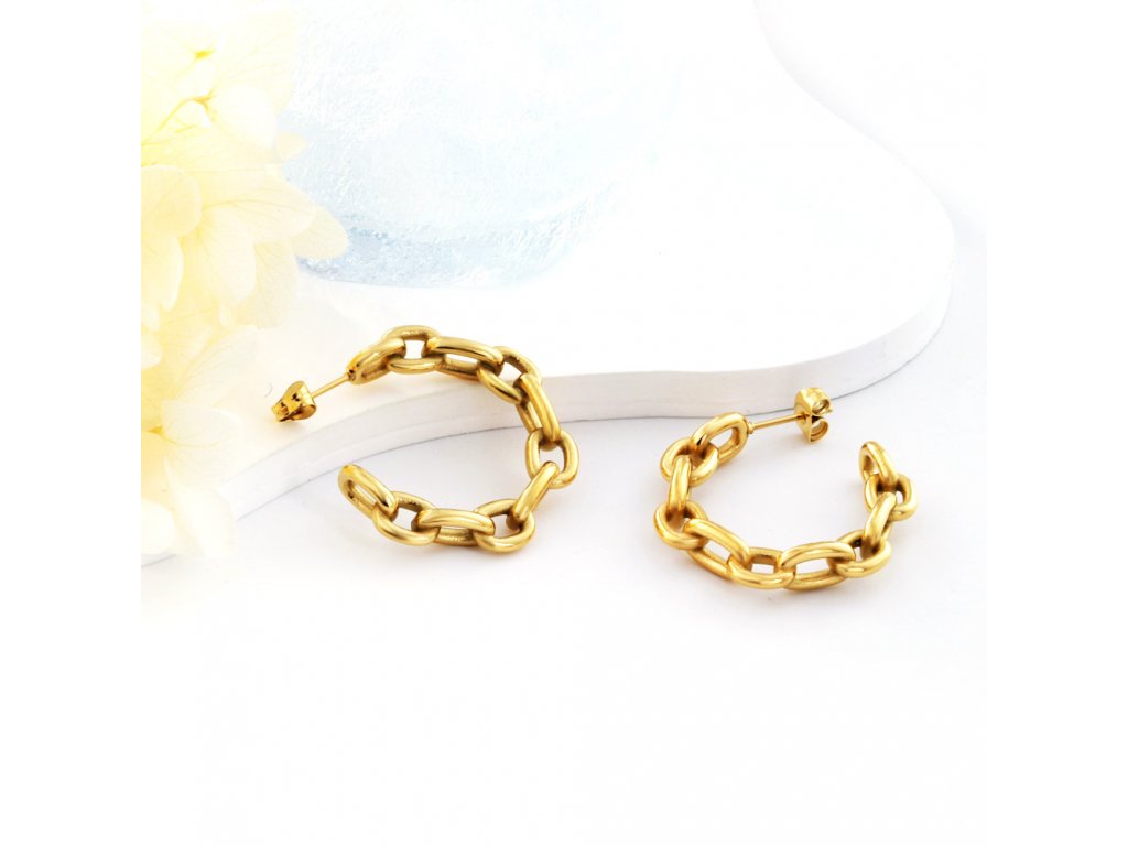 Retiazkové náušnice Tanya v tvare písmena C sú dokonalým výrazným prvkom do šperkovnice každej odvážnej ženy. Zároveň sú však skvelým univerzálnym kúskom, ktorý skombinujete takmer s hocičím, napríklad aj s našími retiazkovými náhrdelníkmi Petra a Nora.