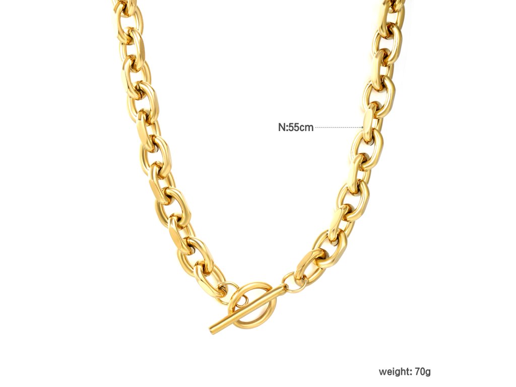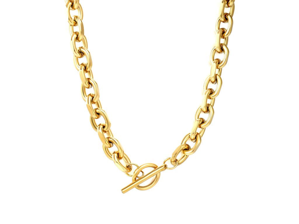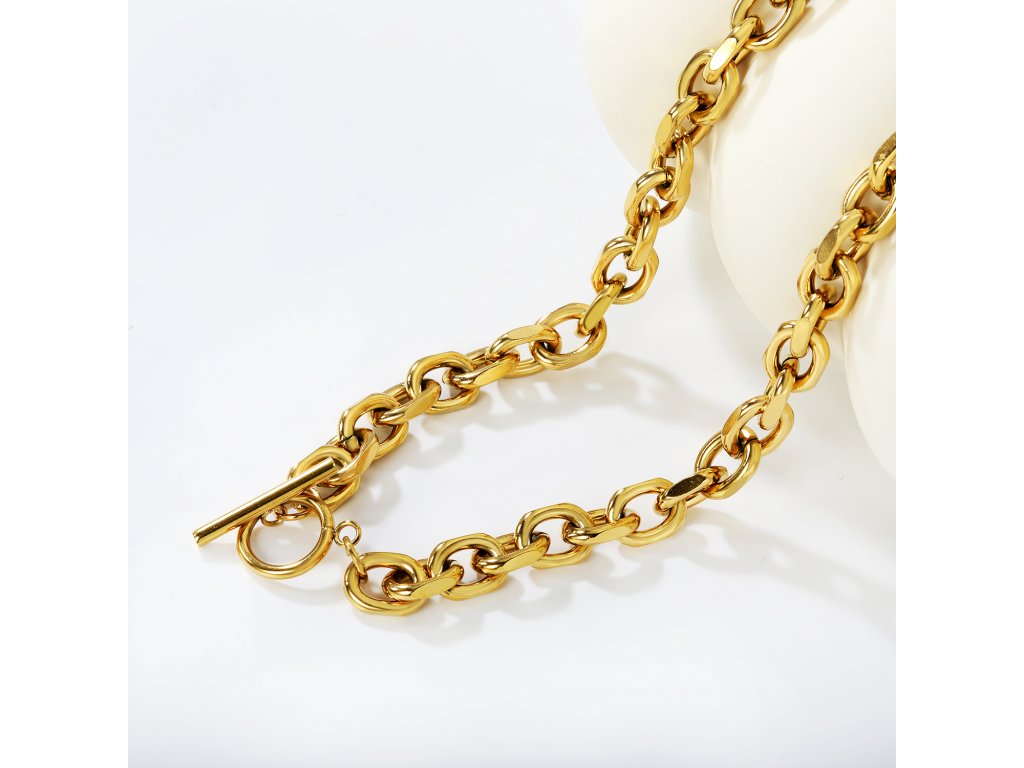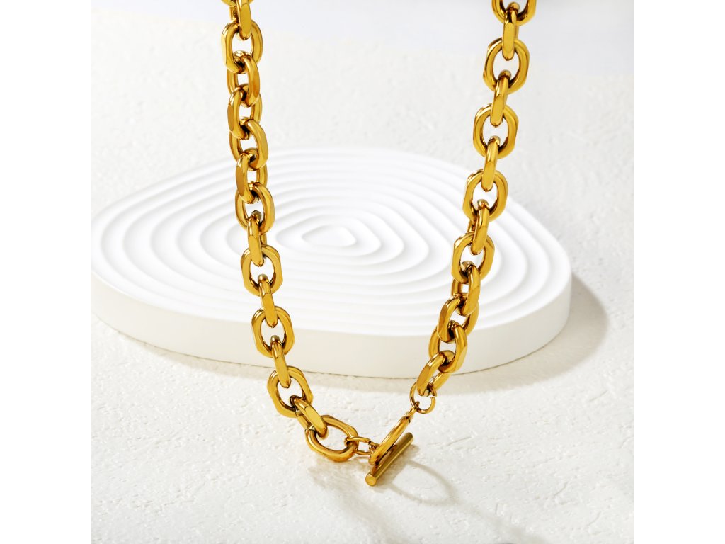Náhrdelník vyrobený z kvalitnej chirurgickej ocele s pozlátením 18k zlatom. Materiál je hypoalergénny, odolný a vhodný na každodenné nosenie.