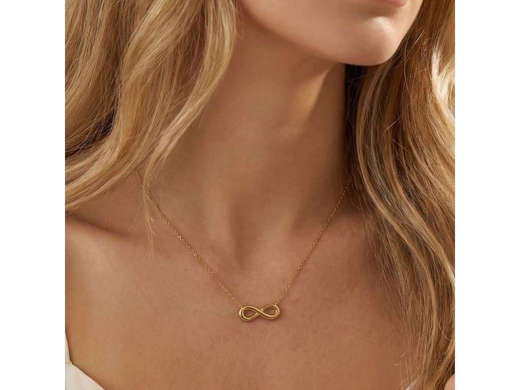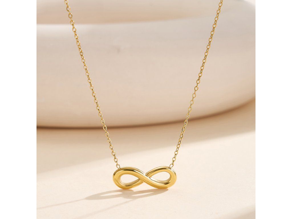 Elegantný šperk s motívom nekonečna, ktorý krásne doplní dekolt a hodí sa na každodenné nosenie aj vrstvenie. Vyrobený z chirurgickej ocele s pozlátením 18k zlatom. Materiál je hypoalergénny, odolný a príjemný na nosenie.