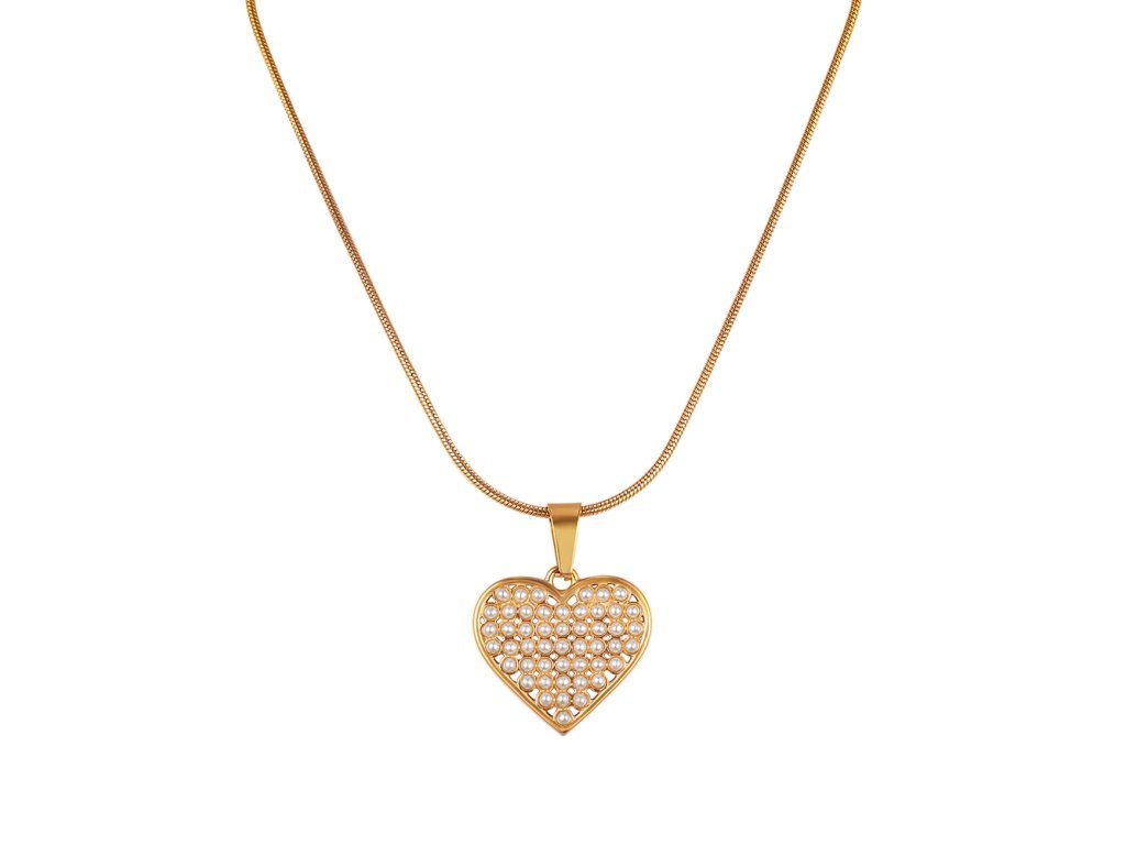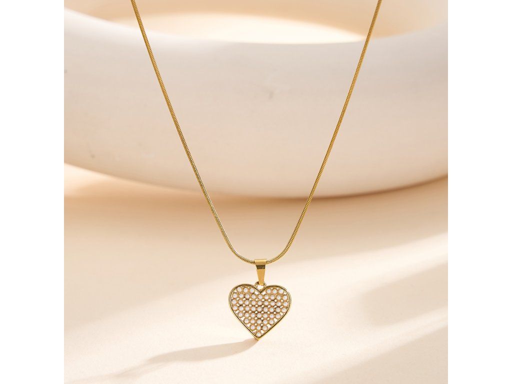 Srdcový prívesok s perlovým efektom pôsobí elegantne a veľmi žensky.
