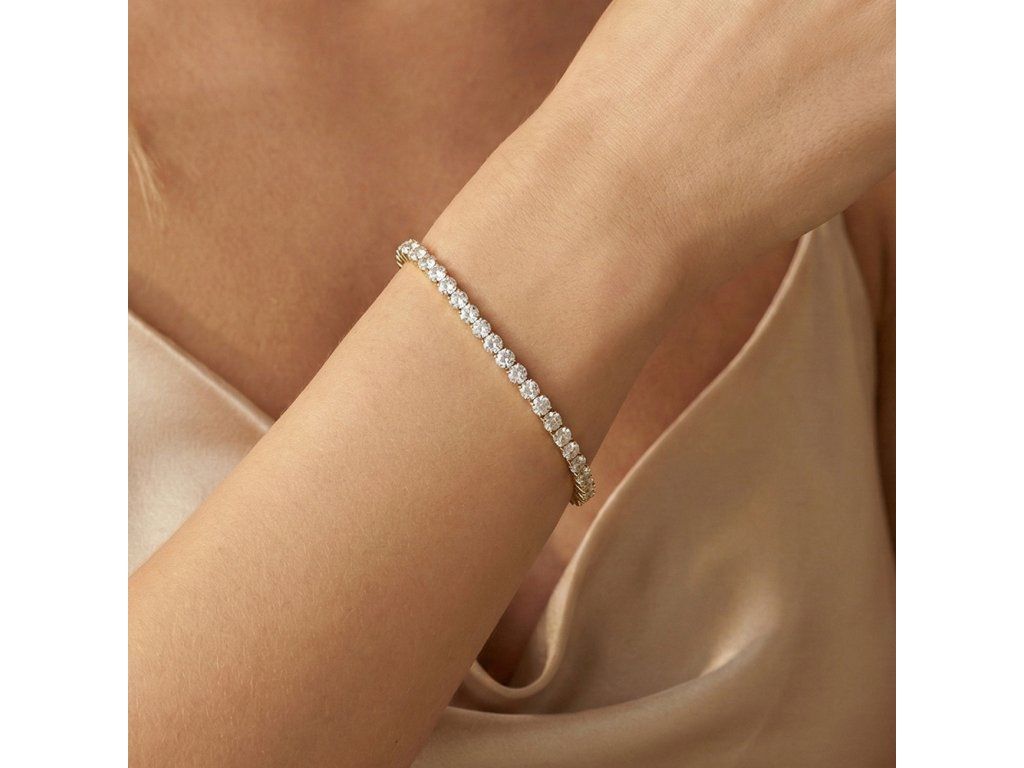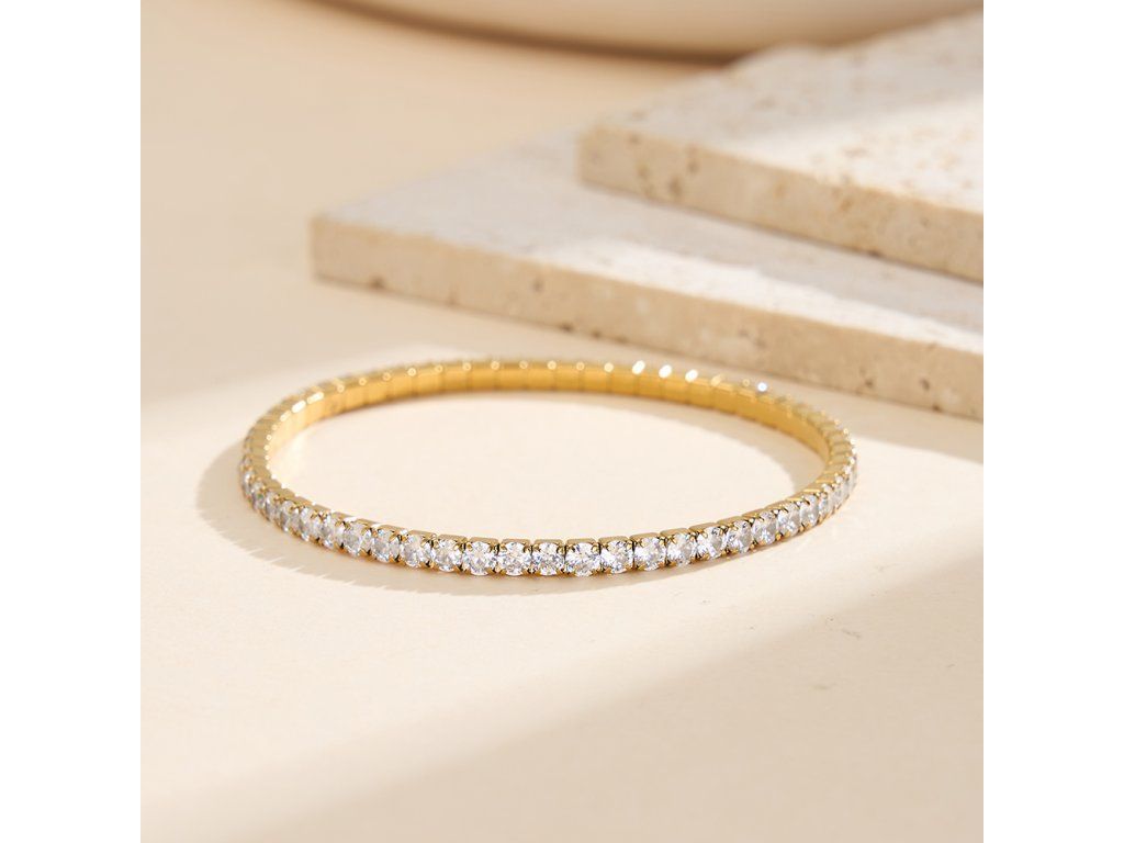 Minimalistický pevný náramok, ktorý pôsobí elegantne a moderne zároveň. Vďaka čistému tvaru sa hodí ku každému outfitu a ľahko sa kombinuje. Vyrobený z chirurgickej ocele s pozlátením 18k zlatom a detailmi z kubickej zirkónie; materiál je hypoalergénny a odolný.