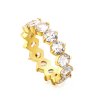 Prsteň Fabio sa pýši naozaj krásnym prevedením. Pozlátenú obruč zdobia priehľadné zirkóny, ktoré z neho robia luxusný doplnok pre každú ženu. Fabio je dostupný aj v striebornom a ružovom prevedení. Tabuľka veľkostí prsteňov