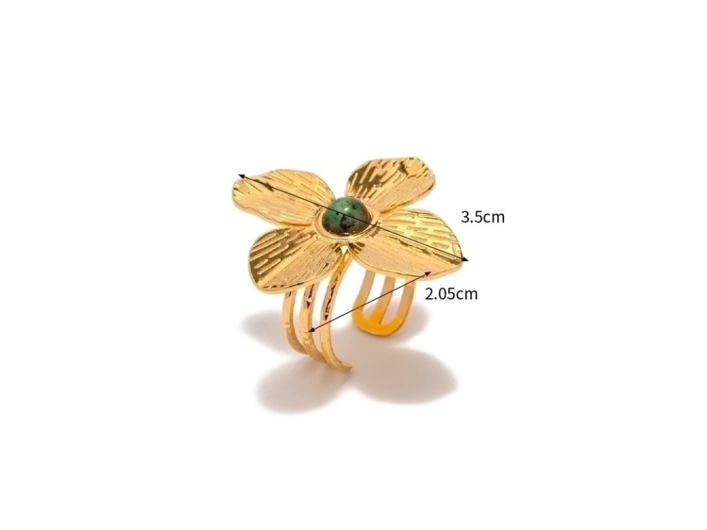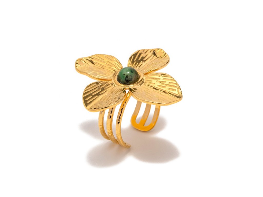 Kvetinové prstene, kde je kvet veľký a dominantný, sú hitom leta. Už máte ten svoj? Floralin okrem krásneho kvetu zdobí aj zelený kamienok.