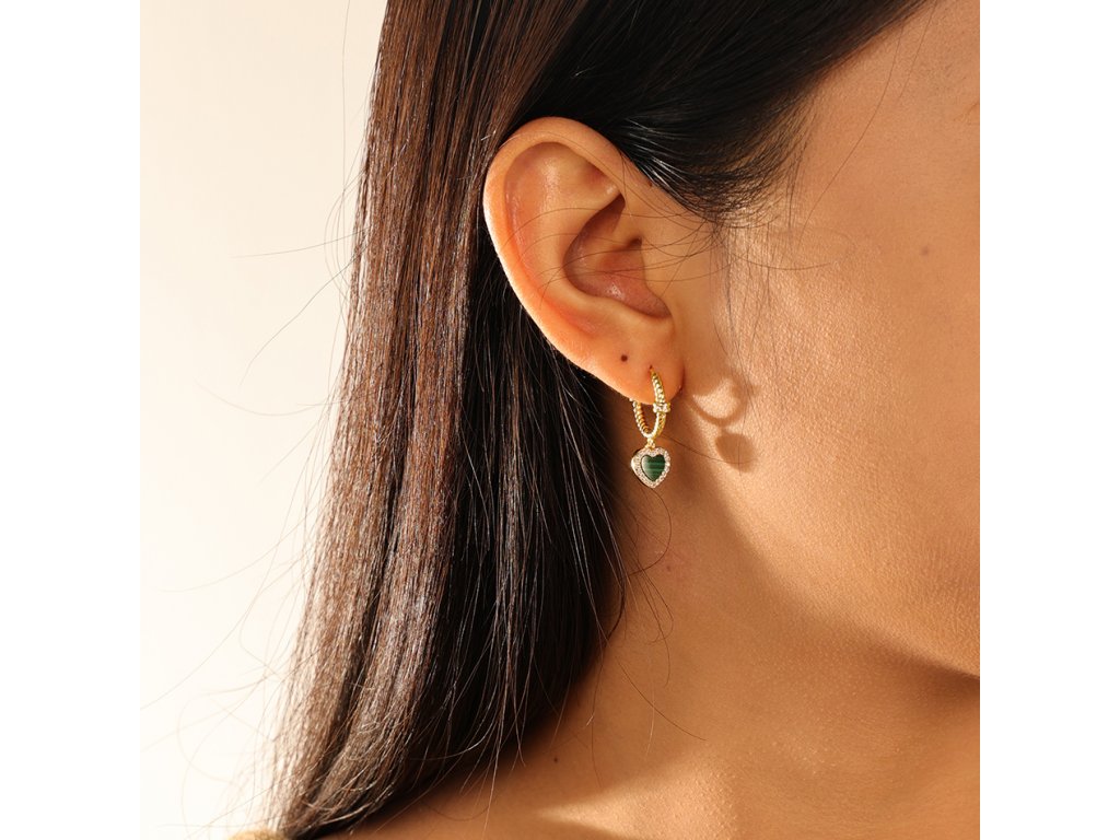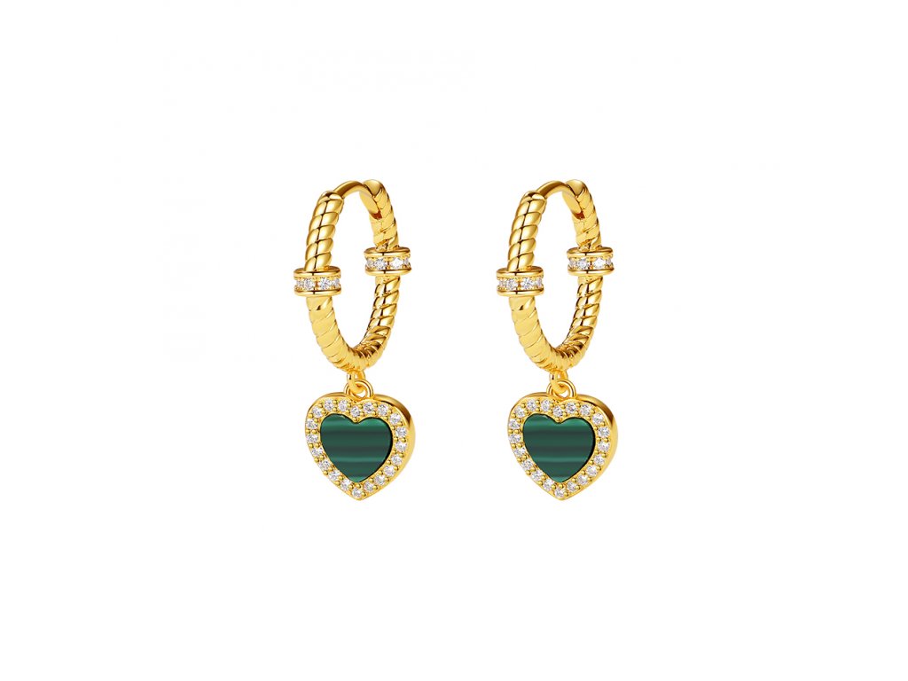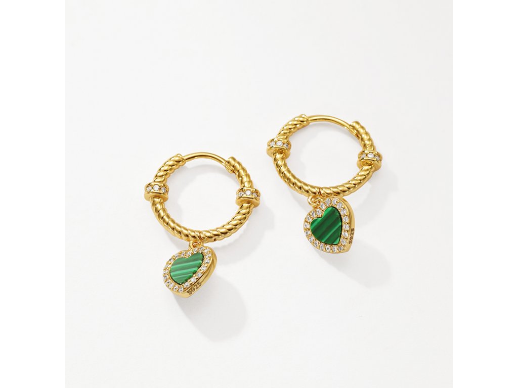 Kolekcia Daphne je výnimočná najmä tým, že je vytvorená z malachitu. Tento ochranný kameň má veľkú silu a tú dodá aj vám. Krásny motív srdca, netradičné zdobenie a zirkóny, to všetko robí z náušníc Daphne nádherný doplnok a nezabudnuteľný dar.