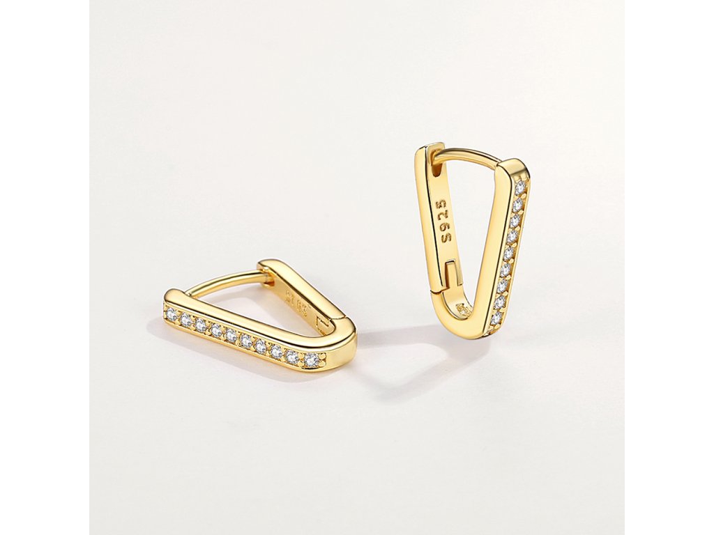 Náušnice Iris trojuholníkového tvaru zdobené zirkónmi sa na uchu vynímajú naozaj dokonale a ich kúpou nešliapnete vedľa.