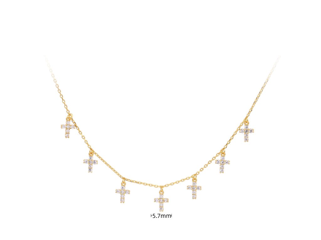 Nádherný a štýlový strieborný náhrdelník s príveskami malých krížikov si rozhodne nenechajte ujsť. Noste ho sám ako dominantu, alebo ho doplňte o dlhší náhrdelník.