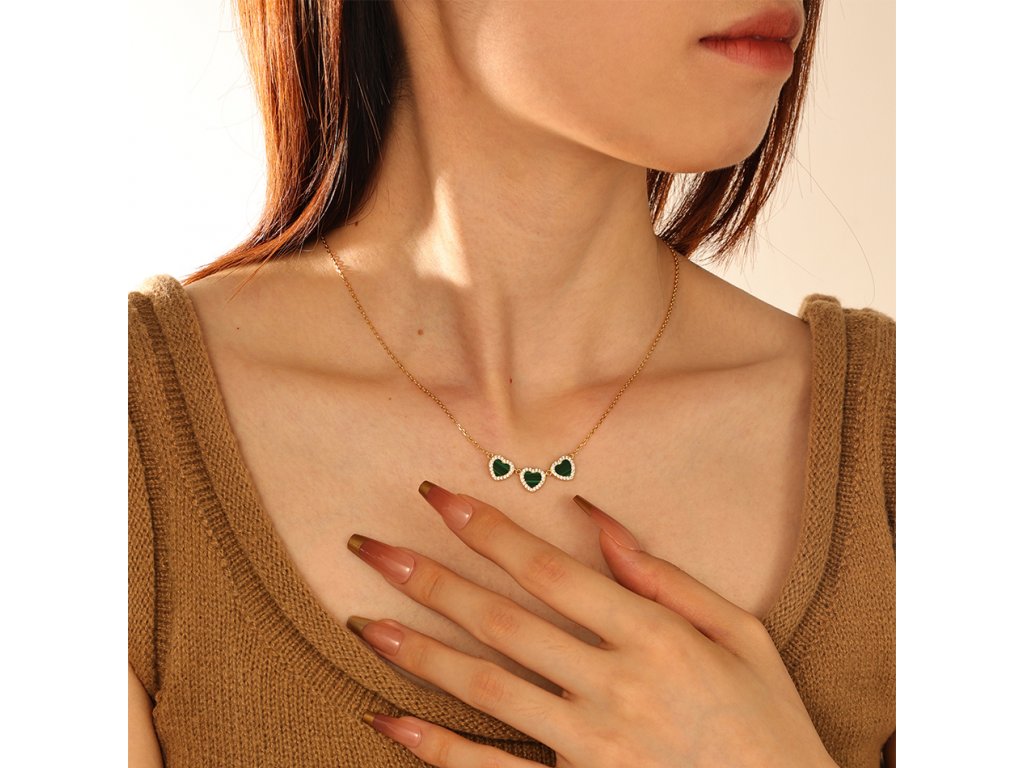 Kolekcia Daphne je výnimočná najmä tým, že je vytvorená z malachitu. Tento ochranný kameň má veľkú silu a tú dodá aj vám. Krásny motív troch sŕdc a zirkóny, to všetko robí z náhrdelníka Daphne nádherný doplnok a nezabudnuteľný dar.