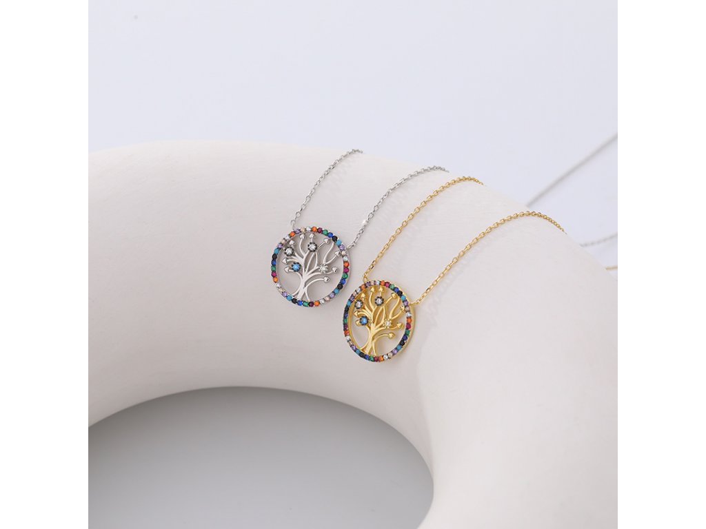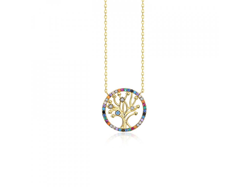 Nič nesymbolizuje život tak, ako slávny Strom života. Oslávte život v celej jeho kráse náhrdelníkom Tree od Life, ktorý zdobí pozlátenie 18k zlatom a nádherná kombinácia farebných zirkónov.